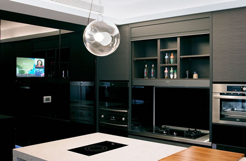 擁有一個開放式的廚房,是許多人的夢想,也是未來的趨勢,但油煙擴散則是開放式廚房的最大弊病。雖然近年來有著雙廚概念導入,但部分空間礙於坪數或格局,劃分上有其難度;而陳總監也表示,再好的抽油煙機,亦無法完全隔絕油煙,這是因為空氣對流所導致,因此有了隱形爐灶這樣一個新專利的產生,將抽油煙機與瓦斯爐整合,左、右與背面各圈圍起來,減去空氣的對流作用,抽油煙機能夠完全地發揮功效,如此一來,家中不但不會瀰漫煙霧,炒菜者也不會因吸入過多油煙,而產生致癌問題。